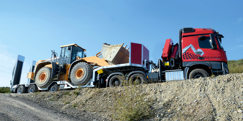 Frühmorgens wird beladen. Fünf Fuhren zur Brückenbaustelle folgen. Die Mittagspause: kurz. Erst die Arbeitsmaschine abholen. Dann Baumaterial ausliefern. Und abends wird noch der Arbeitsplan für den nächsten Tag vorbereitet. Zeit bleibt da nicht. Umso besser, wenn Sie sich auf Ihre Fahrzeuge verlassen können.