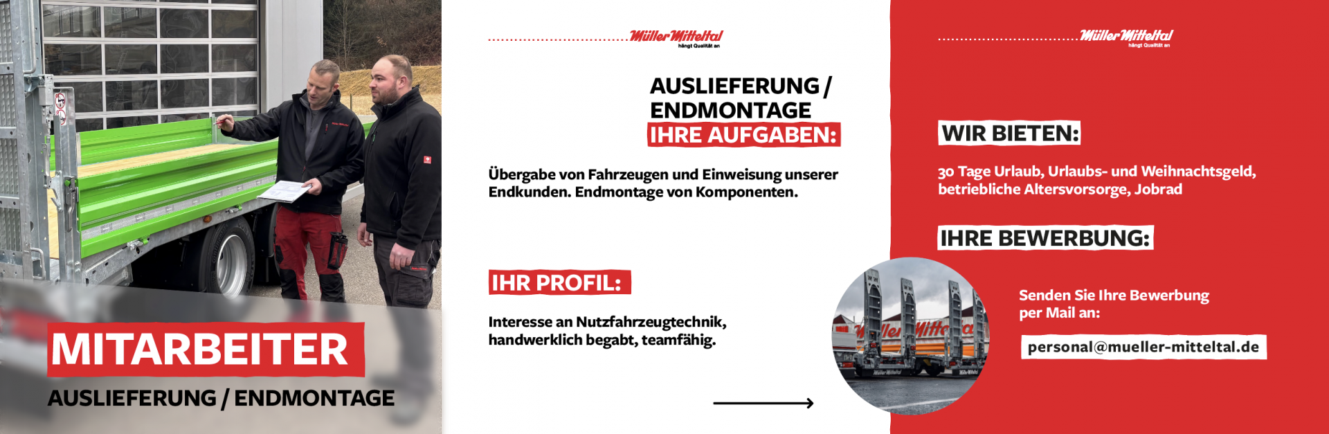 Hohe Qualität und richtungsweisende Technik sind Aspekte, die unser Unternehmen zu einem führenden Anhängerhersteller machen. Als Verstärkung für unser Team suchen wir einen Mitarbeiter (m/w/d) für …