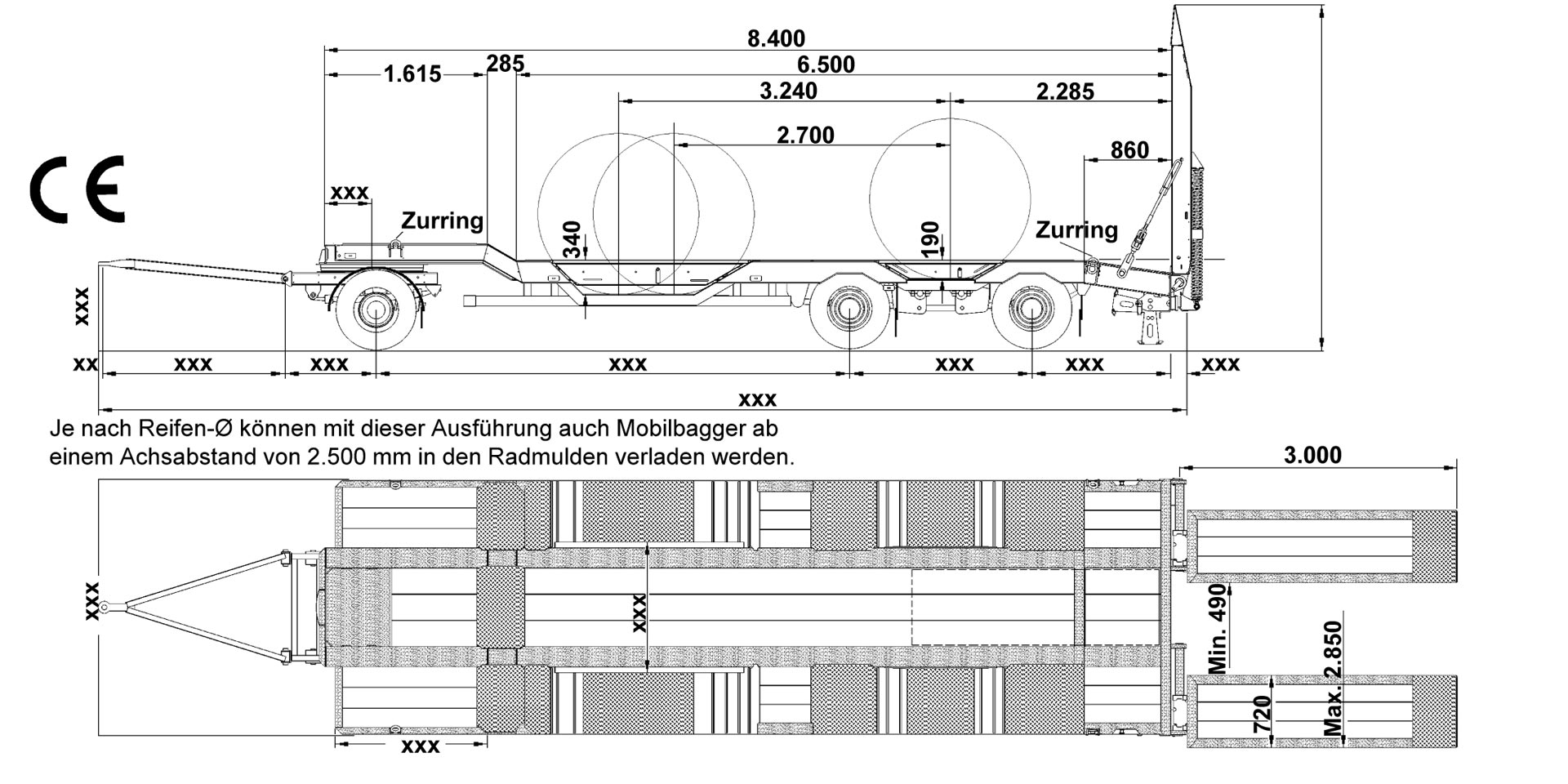 Überfahr-Tieflade-Anhänger mit Radmulden
