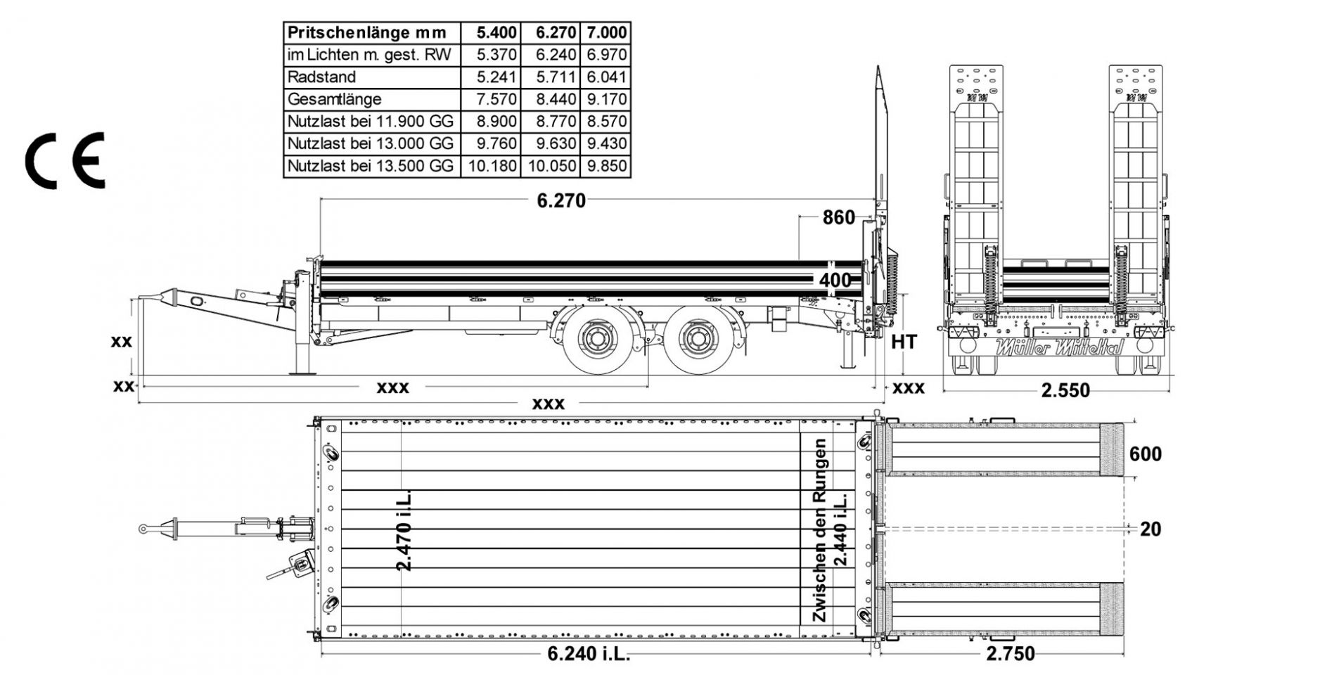 | Bereifung | 4 x 235 / 75 R 17,5 |