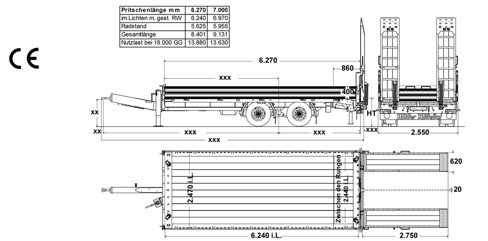 Die überfahrbaren Tieflader von Müller Mitteltal sind zum Synonym für erstklassigen Fahrzeugbau geworden. Die Leichtbaukonstruktion und der Einsatz wartungsarmer und hochwertiger Bauteile gewährleisten zusammen mit hervorragender Mechanik Wirtschaftlichkeit auf höchstem Niveau. Zentralachs-Tieflader, ob in Tandem- oder Tridem-Ausführung sind trotz hoher Nutzlasten auch im beengten Baustellenverkehr leicht und sicher zu rangieren. Die niedrige Ladefläche bietet für Baumaschinen viel Platz nach oben. Damit sind die kompakten und vielseitigen Anhänger vor allem für Bauunternehmen, Industrie- oder Kommunalfuhrparks bestens geeignet, um den Transport von Baumaschinen oder schweren Arbeitsgeräten fachgerecht und zeitsparend zu bewerkstelligen.